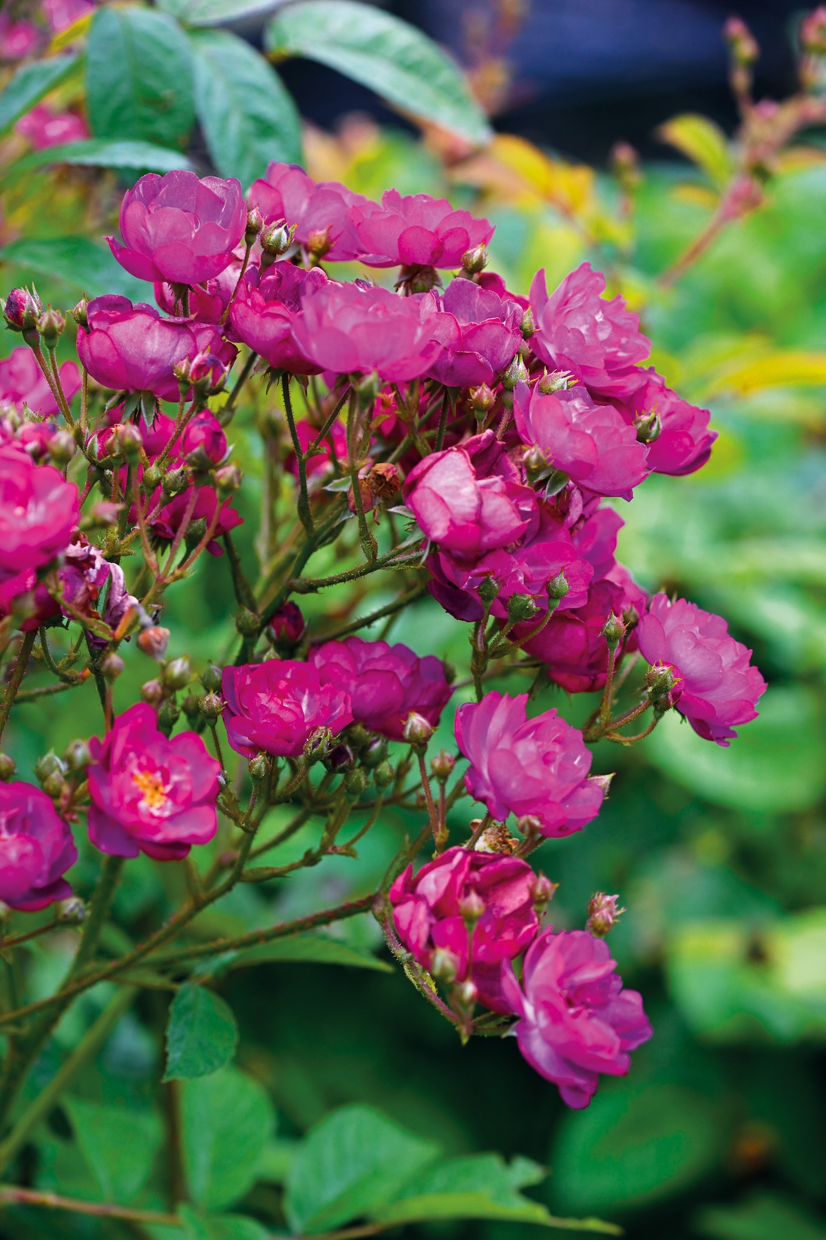 Bouquet de roses. Reconnaissable à ses petites fleurs violet rose très parfumées, voilà le splendide rosier Sibelius ! Cet arbuste généreux est une création de Louis Lens, récompensé en 1981 par une médaille de bronze à Baden-Baden. Il fleurit tout l’été jusqu’en septembre.