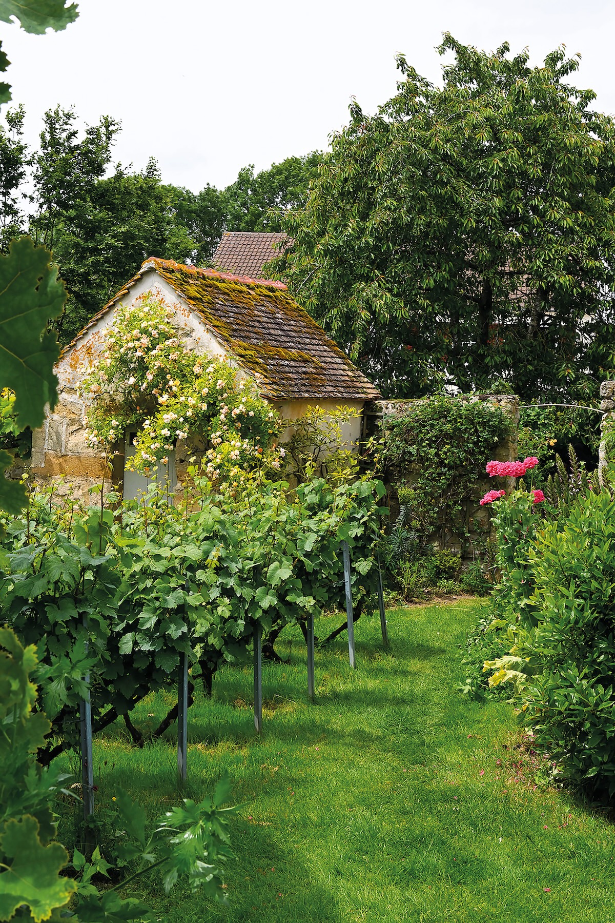 Pieds de vignes. Près des dépendances, quelques rangées des vignes décoratives rendent hommage aux anciens cultivateurs qui travaillaient autrefois à la ferme.