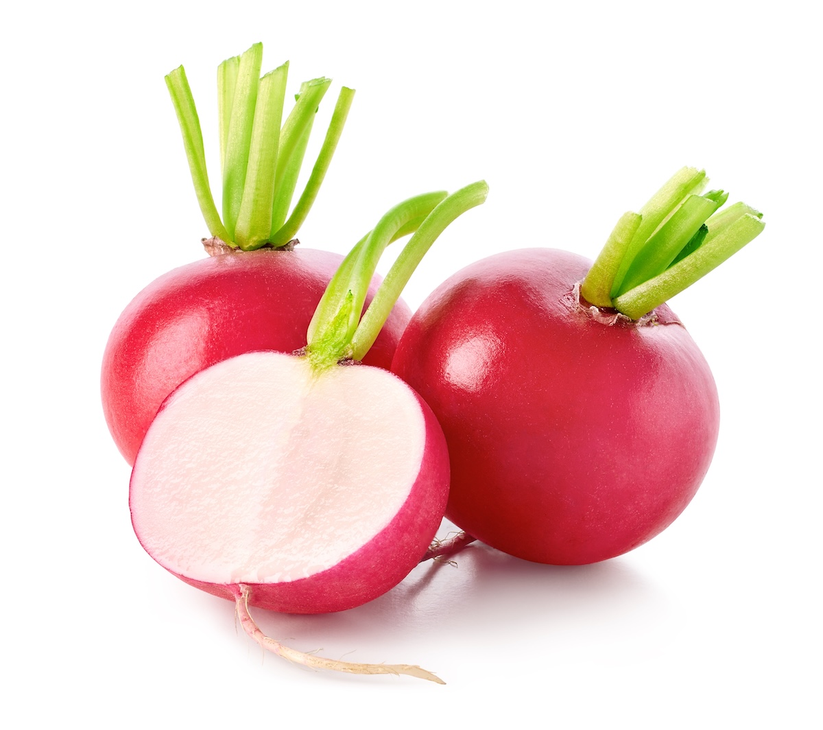 Ce petit légume de la famille des brassicacées cache bien son jeu. Sa forme ronde et sa peau rose évoquent un bonbon, mais en bouche, sa saveur est piquante, voire poivrée. Dû à la présence de composés soufrés, libérés quand on le croque, ce goût particulier est en réalité un mécanisme de défense contre les insectes et autres prédateurs. Il fonctionne aussi sur certains enfants ! Nommé d’après le latin radix (racine), le radis (Raphanus sativus) a d’abord été appelé petite rave avant d’être rebaptisé.
