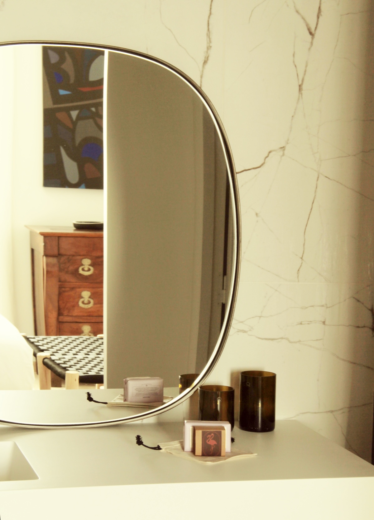 Marcelle en Camargue est une rénovation qui, au terme de neuf mois de travaux, a transformé deux habitations en une seule adresse. Soumise à l’approbation des Architectes des Bâtiments de France, la nouvelle bâtisse respecte l’esprit de la région ; l’architecte aigues-mortais, Ludovic Fontaine a restructuré les espaces autour de la cour-jardin, dans le respect de l’existant. « 100 % des artisans qui sont intervenus sur le chantier sont des professionnels établis dans un rayon de 50 kilomètres autour de la commune, ce qui prouve que l’on peut réussir un projet en faisant confiance à des entreprises locales et à du made in France », constatent Franck et Fabien. Le tandem souhaitait préserver l’authenticité de Marcelle en Camargue, et tout a été mis en œuvre pour réussir ce challenge. « Sous l’olivier », « Royale Marcelle » et « Toit mon toit », toutes les chambres sont équipées d’un lit king size avec matelas en latex naturel de chez Kipli et le linge de maison est signé de la marque vosgienne Garnier Thiebaut.