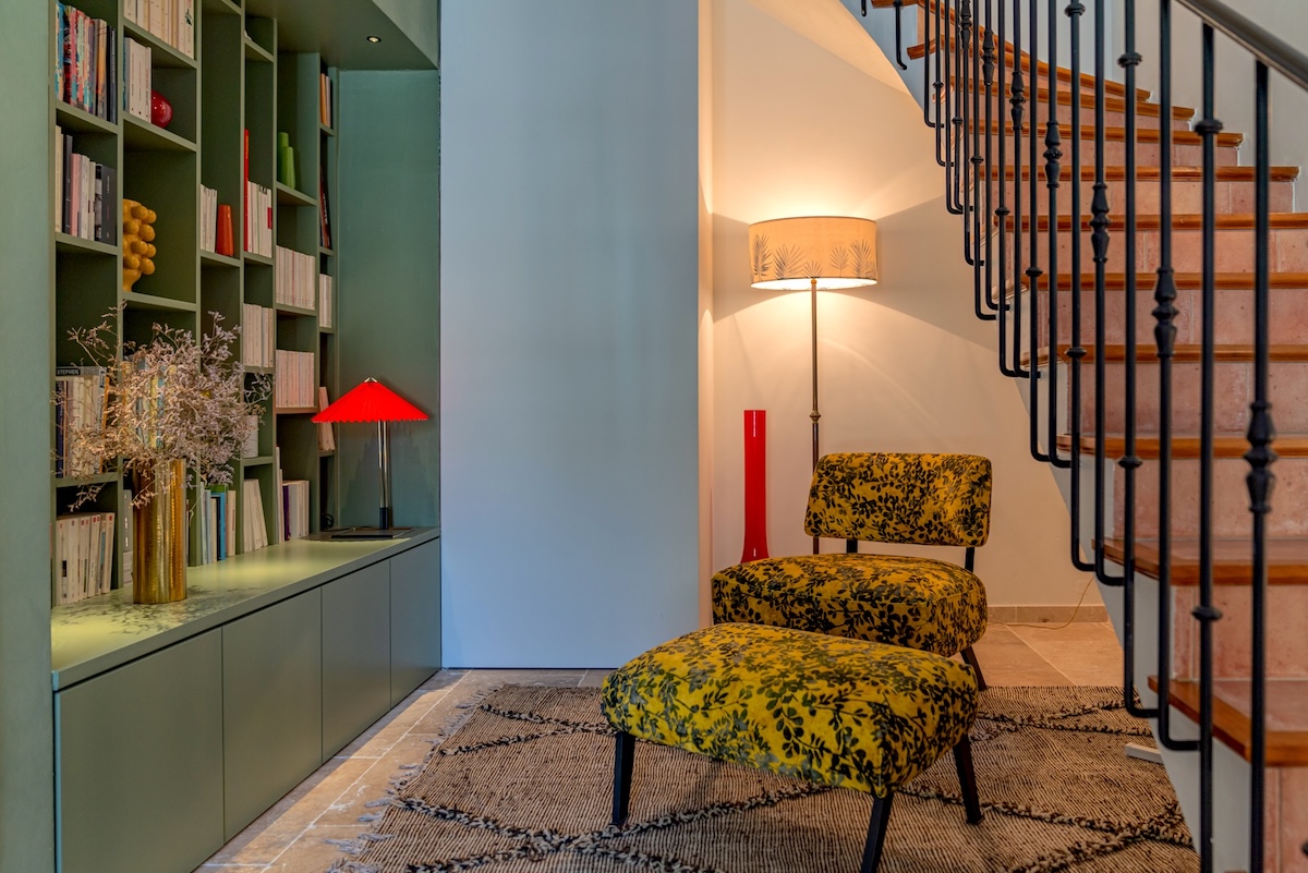 Pause lecture. Garnie de livres et de bandes dessinées, la bibliothèque permet de s’offrir un doux moment de solitude, au frais et confortablement installé dans un splendide fauteuil signé Caravane.