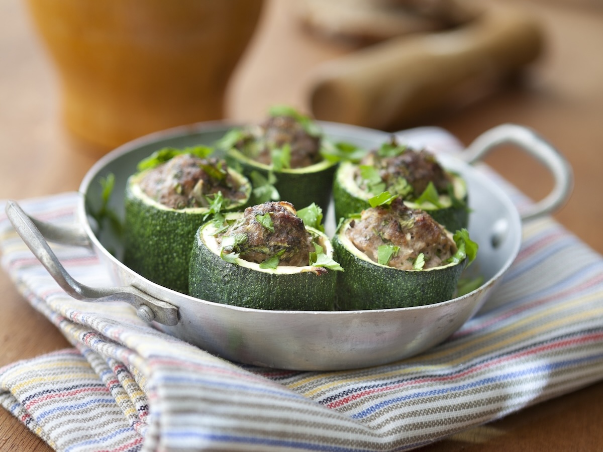 Formez 4 boules avec la farce et garnissez les courgettes. Mettez-les dans un plat et enfournez. Laissez cuire 30 min.